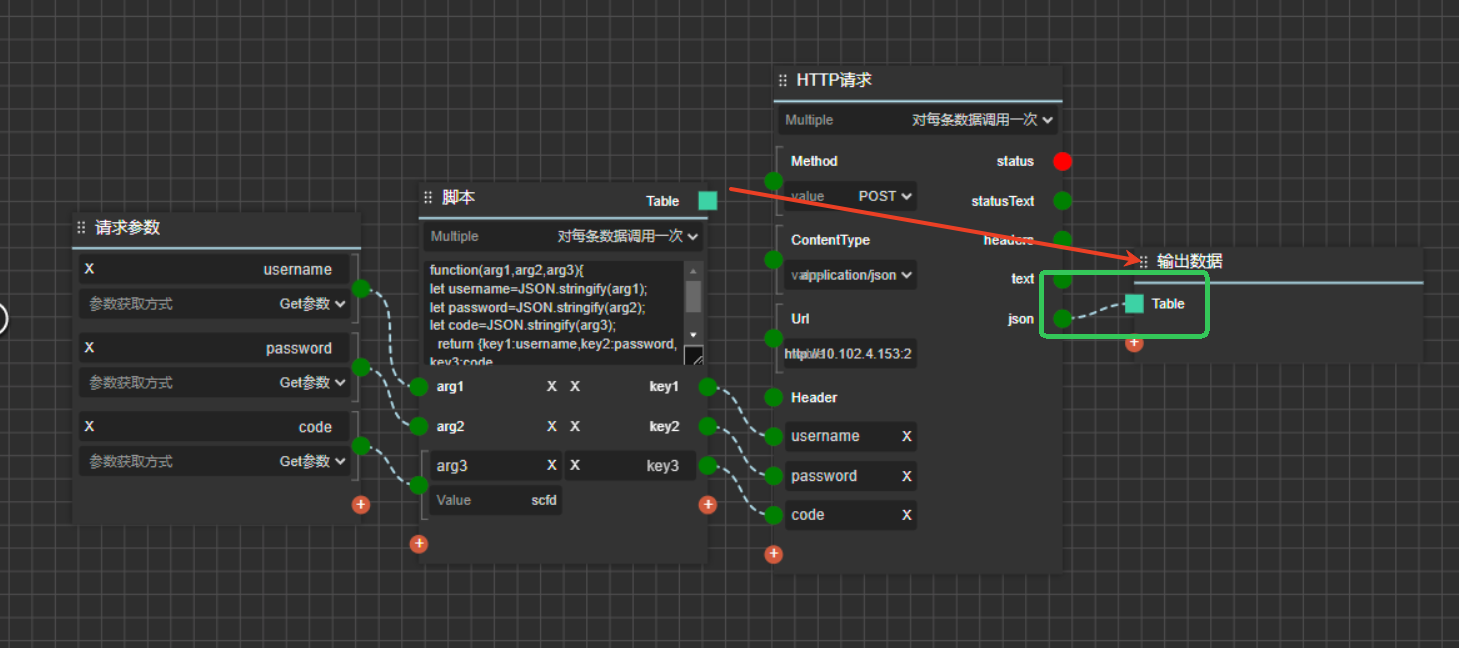 绿色框选内的连接断开,重新将脚本的Table和输出数据的Table连接即可。有关API设置的参考此教程:如何对API数据做处理并接入山海鲸?