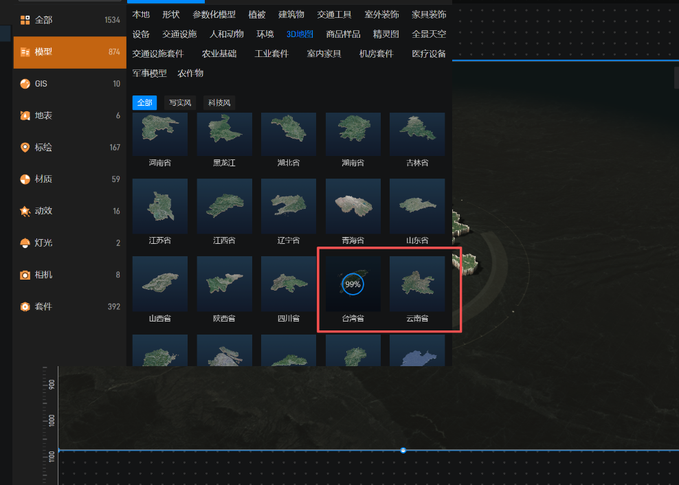 添加3D写实风地图,有的地图一直卡在99%,有的地图显示已下载但是添加不到左侧模型层,是什么原因呀?