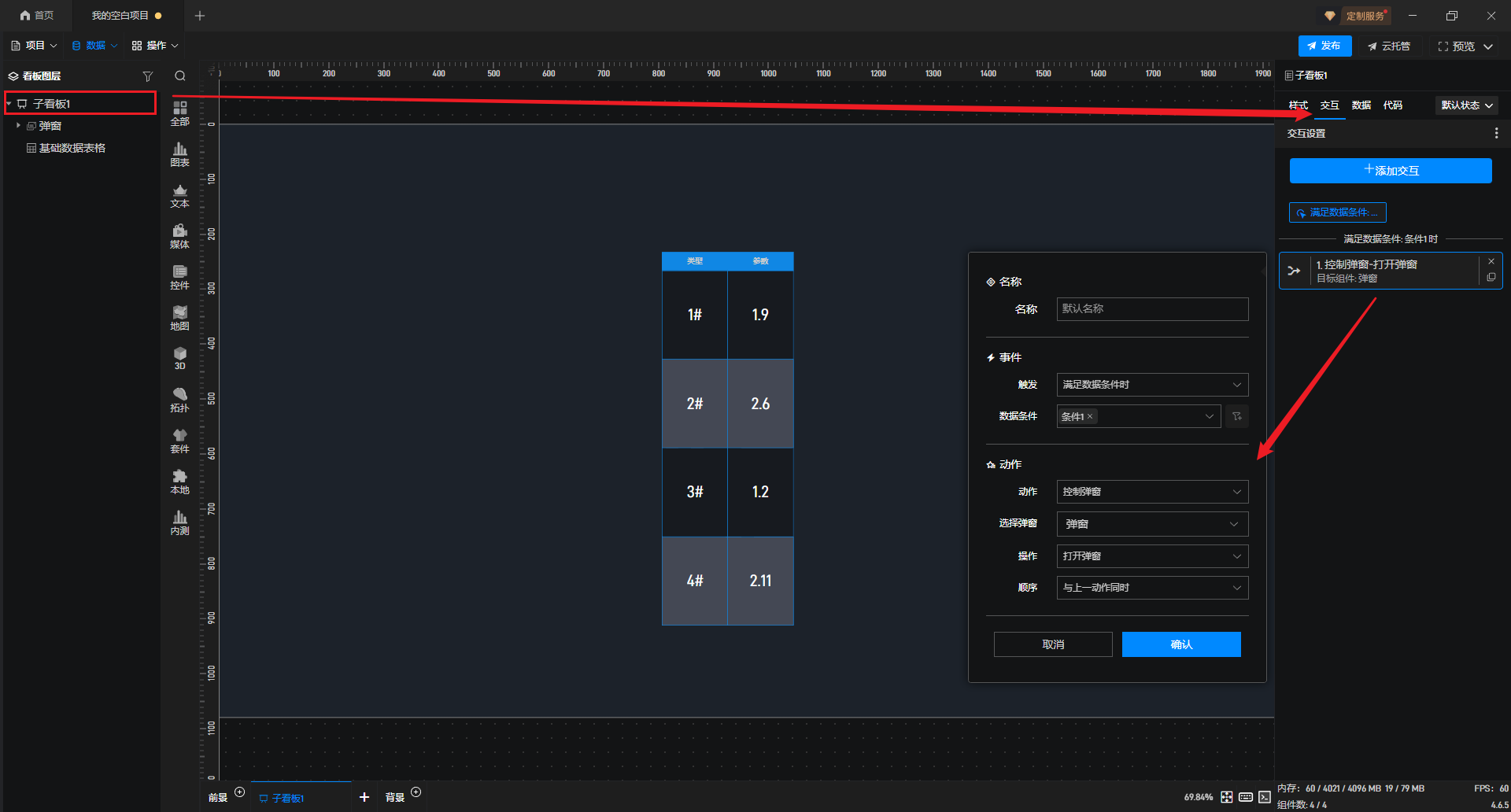 3.当数据满足条件时,触发交互,如下图: