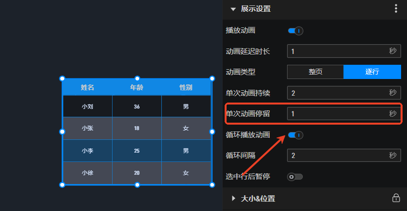 可以轮播,开启循环播放即可。轮播出现闪的效果是因为单次动画停留时间为0,这里建议修改为1。