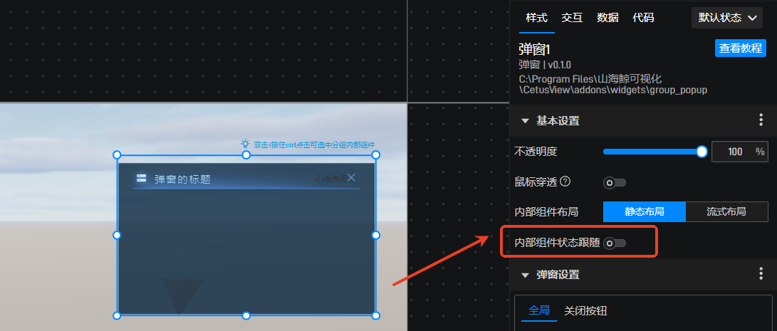 1.首先标记点要勾选数据变成数据标记点,绑定弹窗。弹窗内的组件也要勾选数据。弹窗要开启内部组件状态跟随。参考此教程:标记点概述-项目制作-数字孪生开发教程-可视化大屏制作教程-山海鲸可视化。