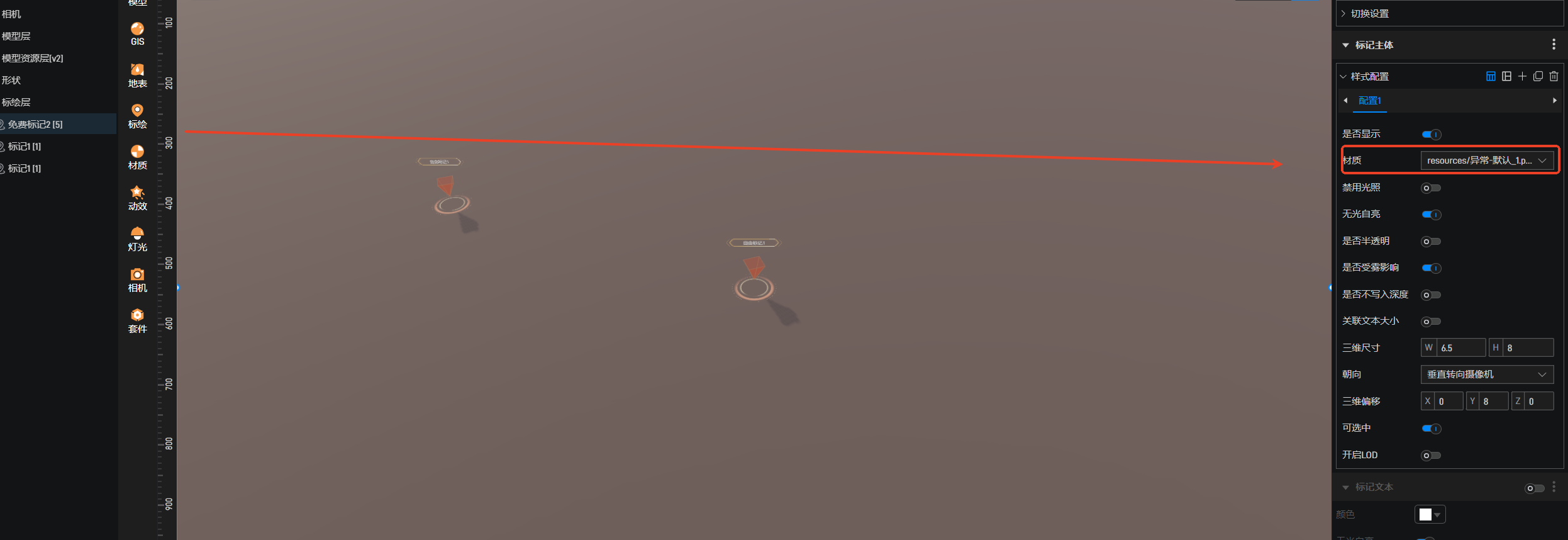 当点击标绘组时,触发二开中的事件,通过下面的代码来修改材质。存在的问题是:会将所有标绘的材质都修改为