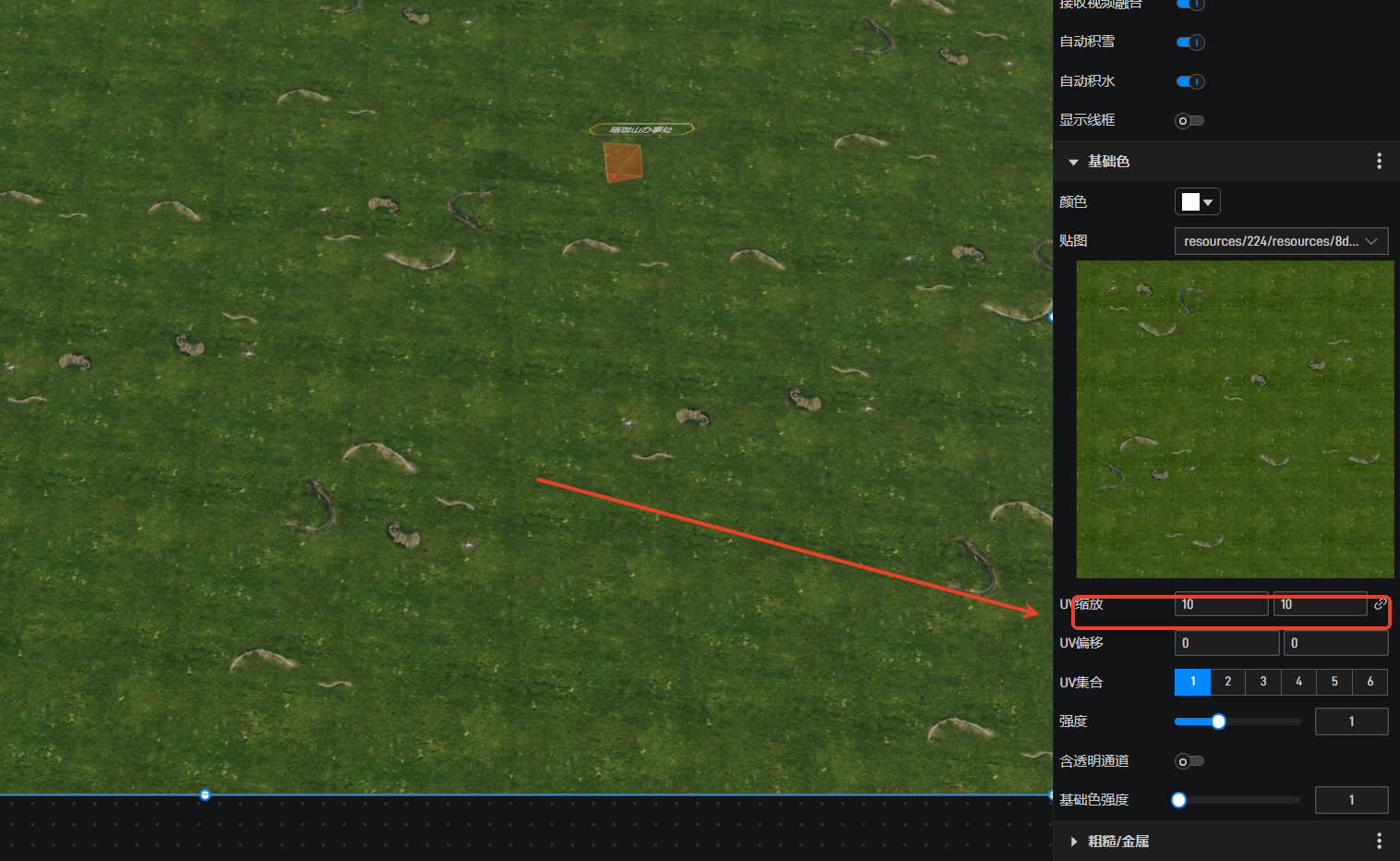 选中材质,调整一下uv比例大小即可。