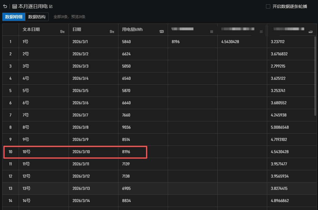 我现在表格里面有一列每天对应的数据,差不多一个月的,我添加个翻牌器可以从表格里面自动选取当天的数据吗?