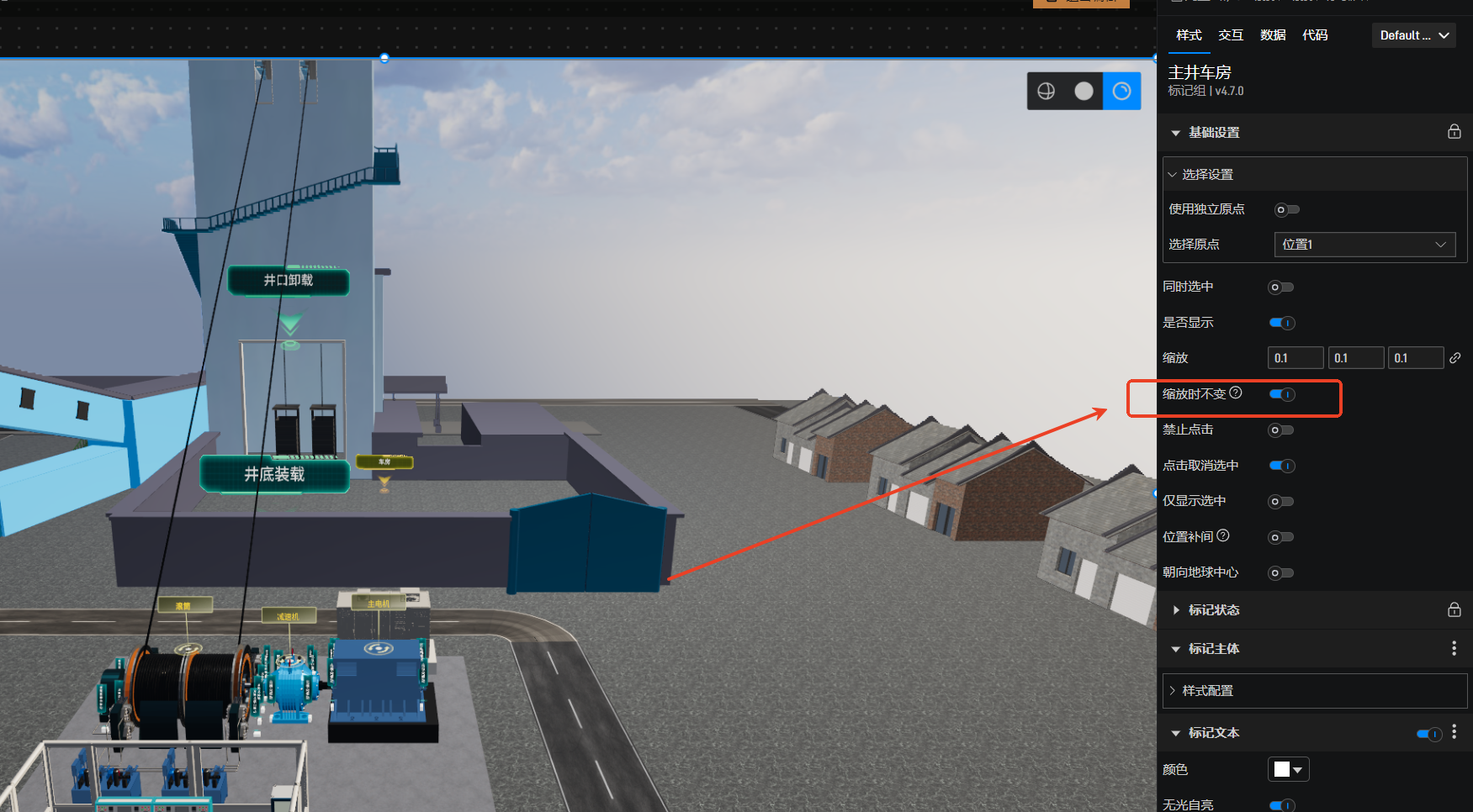 选中标记点组,在样式面板中开启缩放时不变即可。