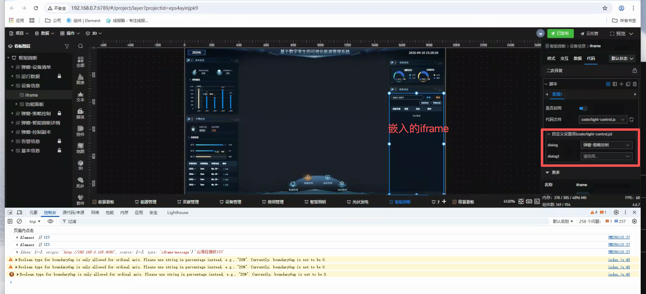 可以用二开交互控制弹窗打开关闭。参考此教程:iFrame嵌入开发 - 开发教程 - 数字孪生开发教程-可视化大屏制作教程 - 山海鲸可视化;二开与交互通信 - 开发教程 - 数字孪生开发教程-可视化大屏制作教程 - 山海鲸可视化。