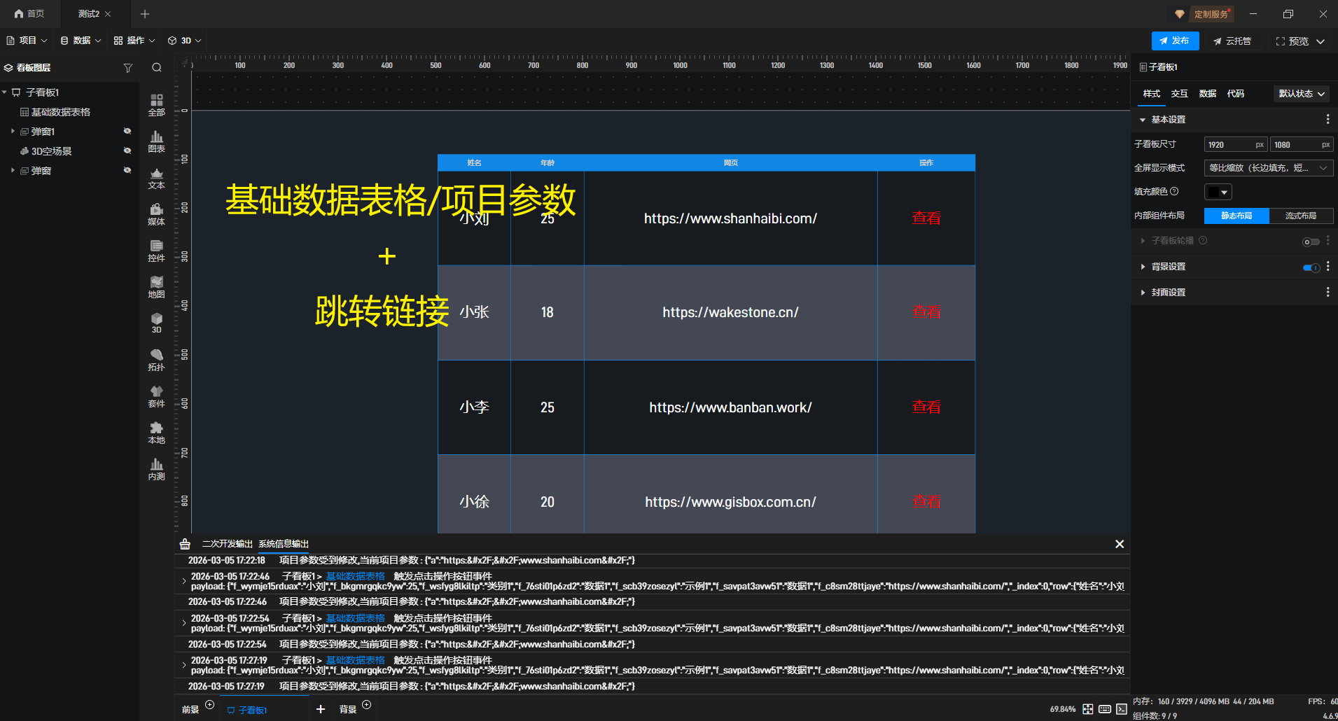 循环滚动效果是网页设计中吸引用户注意力的常用技巧,可高效实现图片自下而上平滑滚动、消失并无限循环的视觉效果。它既能优化空间利用率,又能为静态页面注入动态活力,以下将详细解析其实现路径,助力创作者打造更 具吸引力的视觉内容。1.在左侧组件库中,添加“图片”组件至项目中。接着选中图片组件,在“样式”配置栏中,点击“图片地址”旁的扩展选项,选择“生成数据字段”,图片地址建议填写网络地址,可以使用GISBo x进行生成,详情参考此教程:如何将本地图片生成网络地址? - 数字孪生可视化产品交流社区接着,为图片组件添加相应的数据。3.在左侧组件库中,添加“列表”组件至项目中。接着将“图片”组件与“列表”组件成...